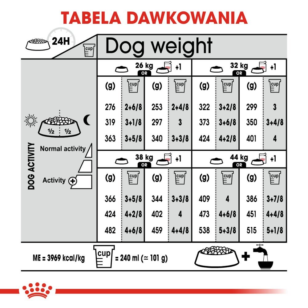 | Waga psa dorosłego | 26 kg | 28 kg | 30 kg | 32 kg | 34 kg | 36 kg | 38 kg | 40 kg | 42 kg | 44 kg |